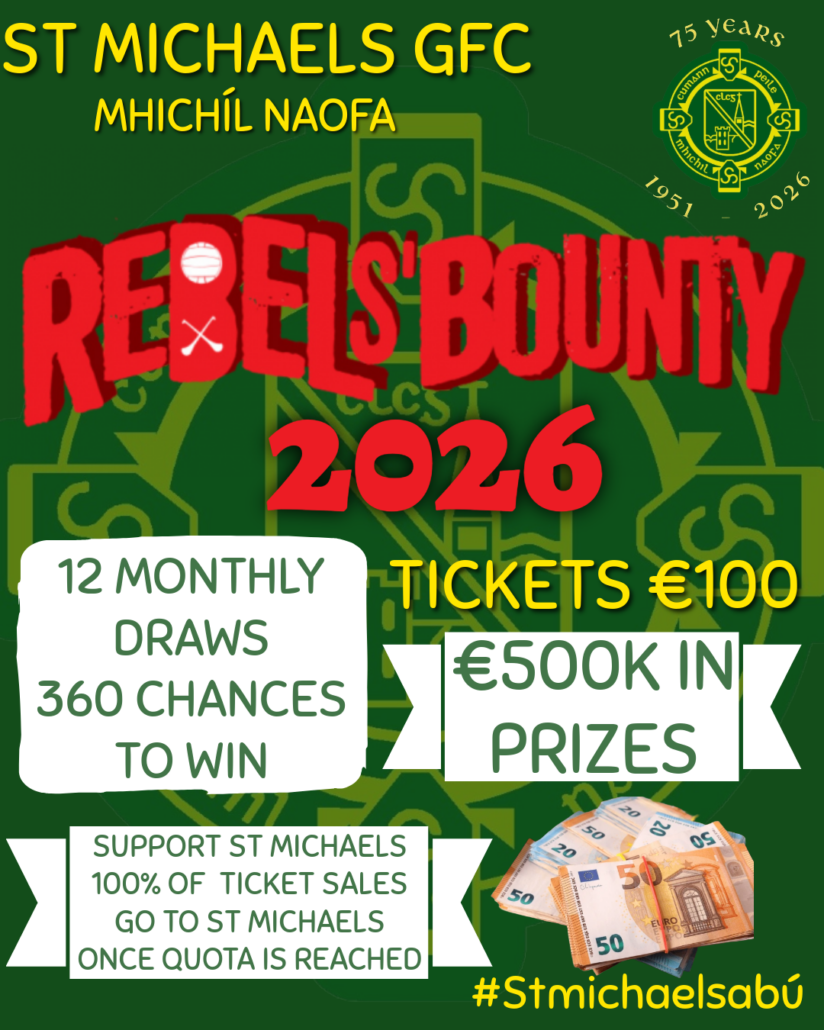 A fantastic opportunity as a fundraiser towards our 4G development. With 12 monthly draws and over €500k in prize money ,you can support St Michaels and be in with a chance to win some big prize money at the same time.The Jan Feb and March draws will be held towards the end of March. We have a quota of sales , once we reach that ,then all subsequent sales will go direct to St Michaels. Unfortunately, we had a drop off in sales and renewals last year so we are appealing for people to renew either from last year or from previous years. Click on the link below and ensure you select St Michaels as your club. If you are an existing subscriber, can you make sure that you renew if you are not a direct debit subscriber. Its a big year for St Michaels with impending works on our 4G safeguarding our facilities for the future. #Stmichaelsabú 🟢🟡
