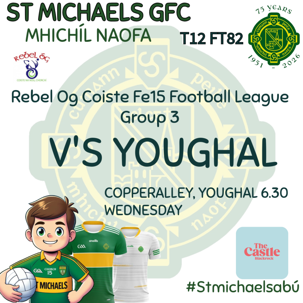 Our U15’s travel to Youghal tomorrow evening to take on the home side. Best of luck lads #stmichaelsabú 🟢🟡 Under age academy kindly supported by @thecastle.blackrock