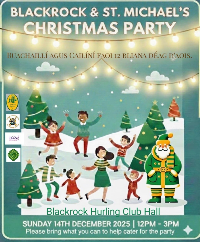 Hi Save the date: Next Sunday, in Blackrock Hurling Club ,St Michaels and Blackrock underage boys and girls academies combine for their Christmas party. 🟒🟑St. Michael’s LGFC Blackrock National Hurling Club