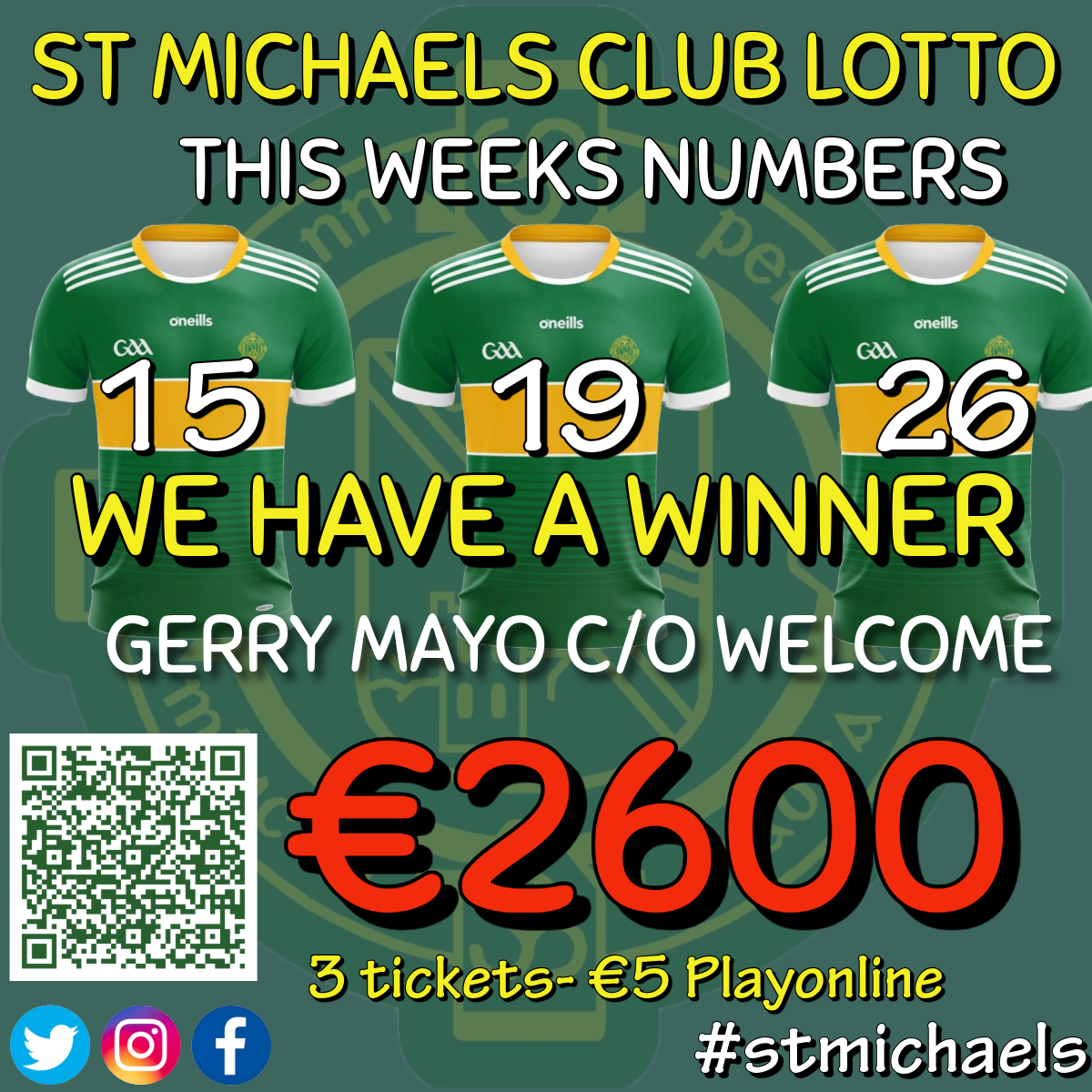 We have a winner … Gerry Mayo c/o Welcome inn….Our next draw is Jan 5th with a Jackpot of €500 . Thanks to everyone once again who support our lotto and indeed our lotto committee for all their hard work in 2025. We also had a daw tonight for 6 x €50 SuperValu Vouchers.